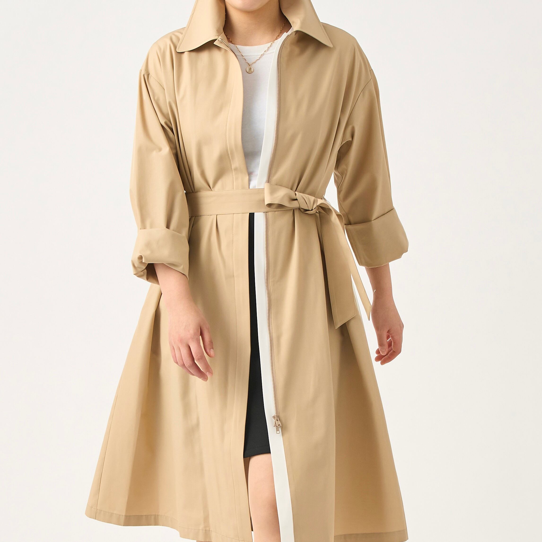 レディーススプリングコート 軽くてシワになりにくい個性的バイカラーのトレンチコート